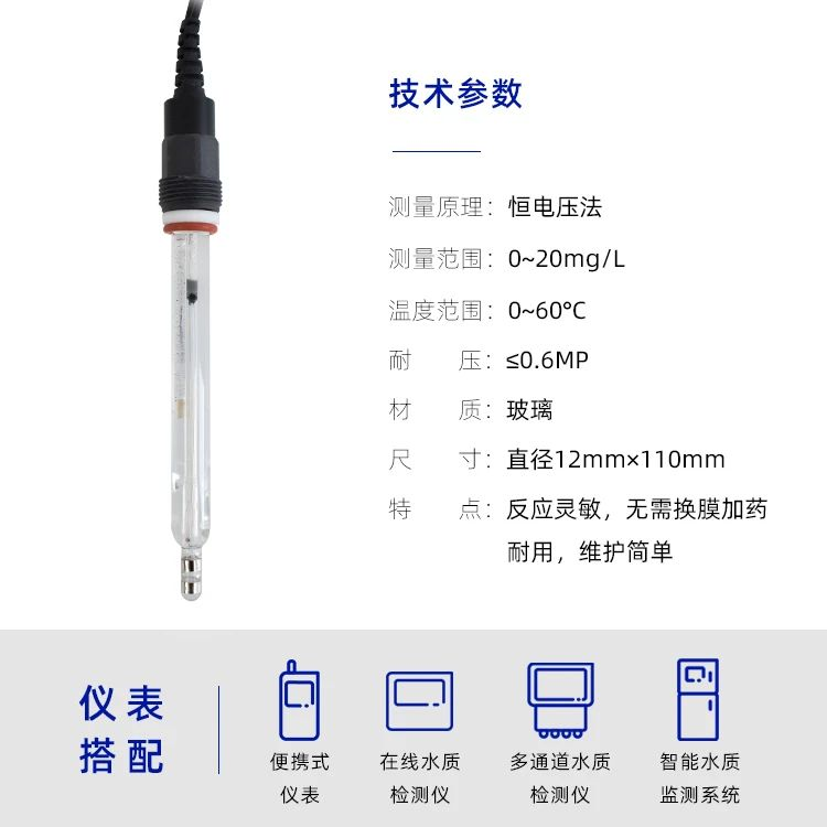 極譜法余氯電極由陽極、陰極、電解液、隔膜、以及陰極上覆蓋的一層透氣性薄膜組成。
