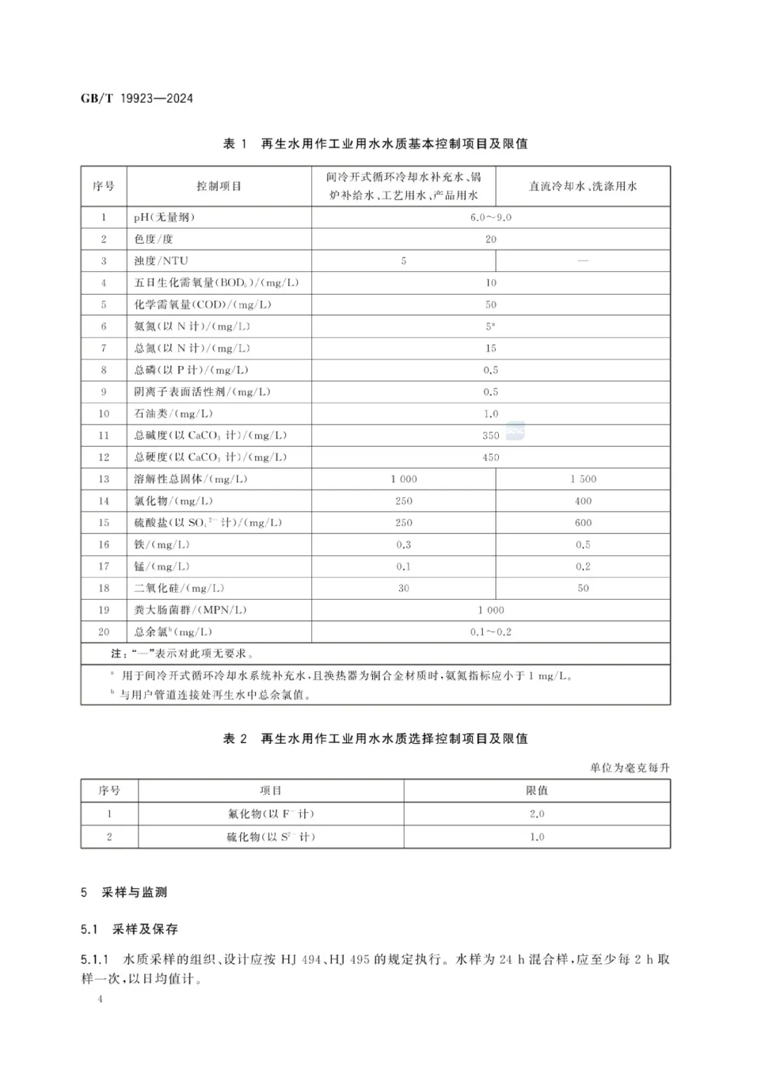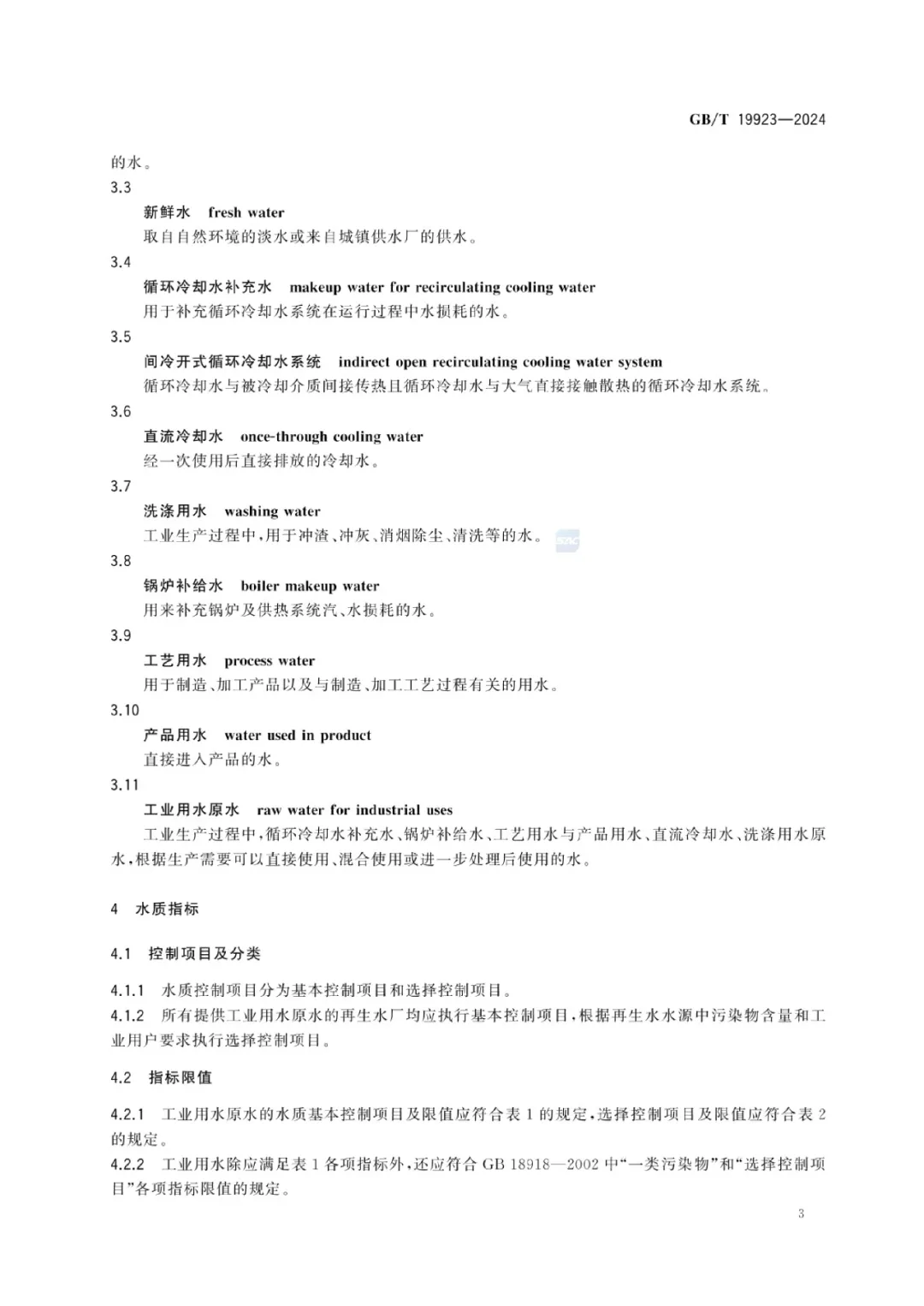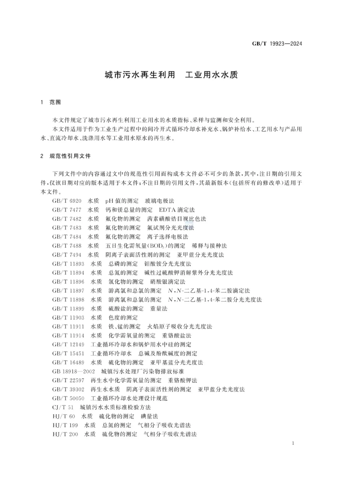 國家市場監督管理總局、國家標準化管理委員會發布2024 年第 1 號國家標準公告,GB/T 19923-2024《城市污水再生利用 工業用水水質》于2024年3月15 日正式發布,10 月 1 日起正式實施。